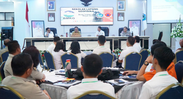 "Sehubungan dengan data inilah maka selaku pemerintah dan masyarakat kota Bitung patut bersyukur karena mendapat perhatian dari pemerintah pusat dalam hal ini BMKG dengan menyelenggarakankan kegiatan sekolah lapang Geofisika yang bertujuan membangun kapasitas pemerintah dan masyarakat kota Bitung dalam meningkatkan kesiagaan untuk bencana gempa bumi dan Tsunami,"tandasnya.