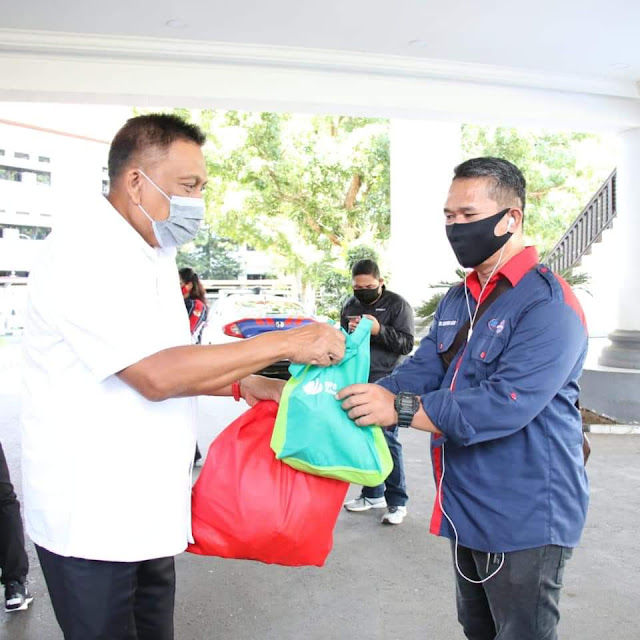 Adapun paket sembako dari Pemprov Sulut melalui Dinas Sosial Sulut yang dikemas dalam tas berisi mie instant 10 bungkus, beras 5 kg, minyak goreng 1 liter, 3 kaleng ikan siap saji dan 5 buah masker ini diterima secara simbolis oleh pimpinan serikat buruh di Sulut.